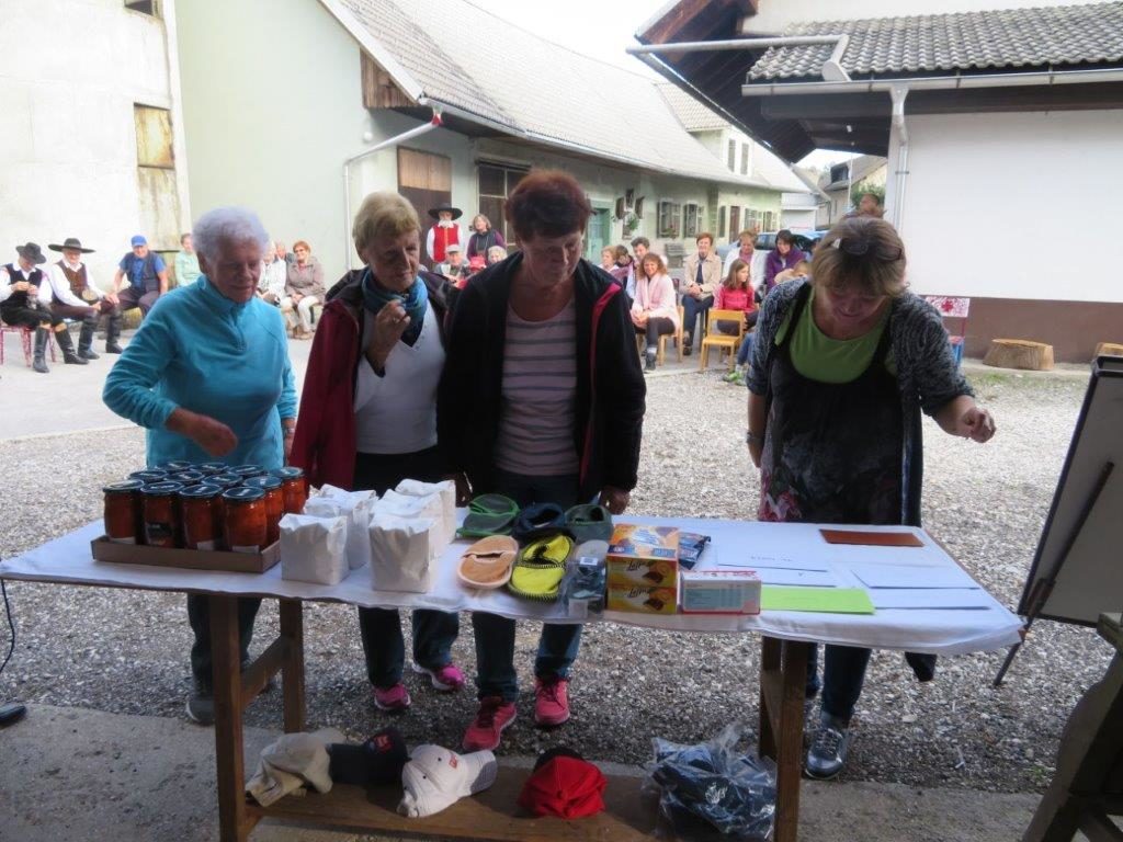 Ja glavnega pa ne smemo pozabit. Nagrade. Bile so izvirne in bogate. Otroci so nesli domov vrečo krompirja, pa jajca, bone za frizerja, kape, majice, me pa moko, frizerske bone, pa h pedikerju bomo tudi zavile, ajvar in klobase so ostali za muskontarje. Pa je bil volk sit in koza cela, bi rekla moja stara mama.